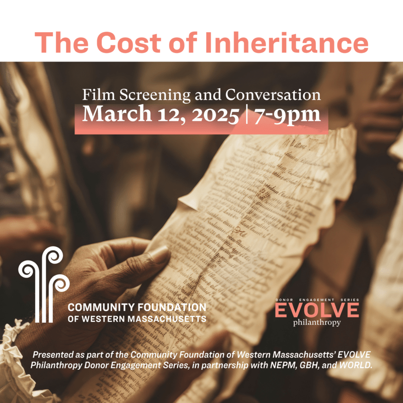 Join us for Amherst Cinema's COMMUNITY NIGHT screening of The Cost of Inheritance, an America Reframed documentary. Presented as part of the CFWM EVOLVE Philanthropy Donor Engagement Series, in partnership with NEPM, GBH, and WORLD.